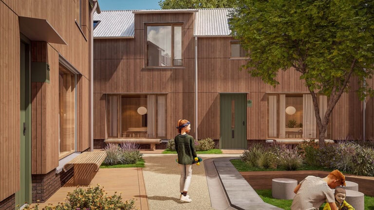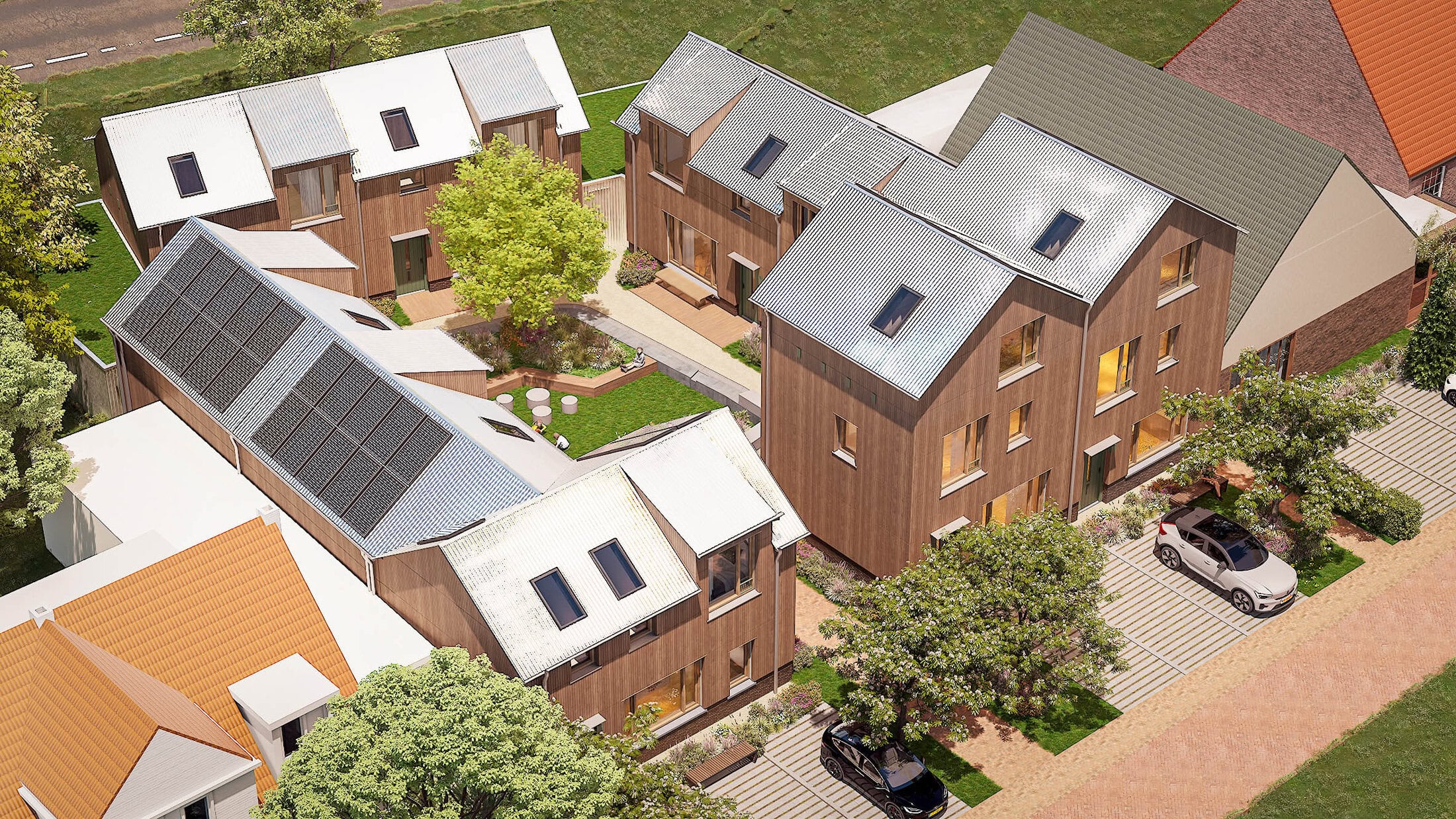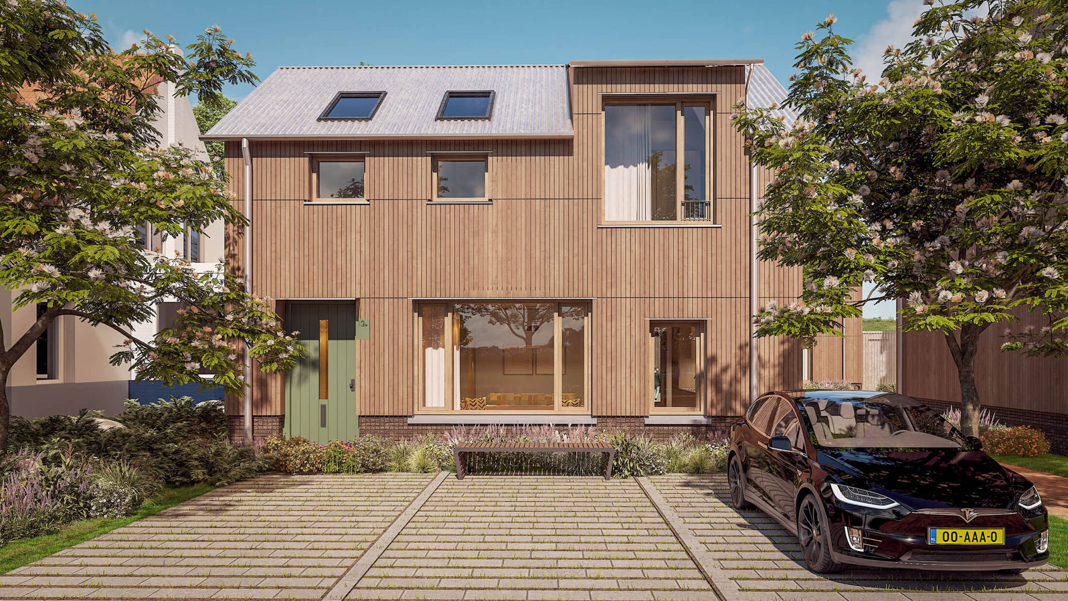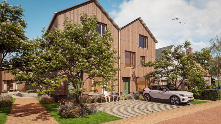 De woningen krijgen CLT-casco’s en biobased geïsoleerde houten gevels. De komende periode werken we met alle betrokken partners verder aan de uitwerking van het project. Start bouw verwachten we in Q4 2026.